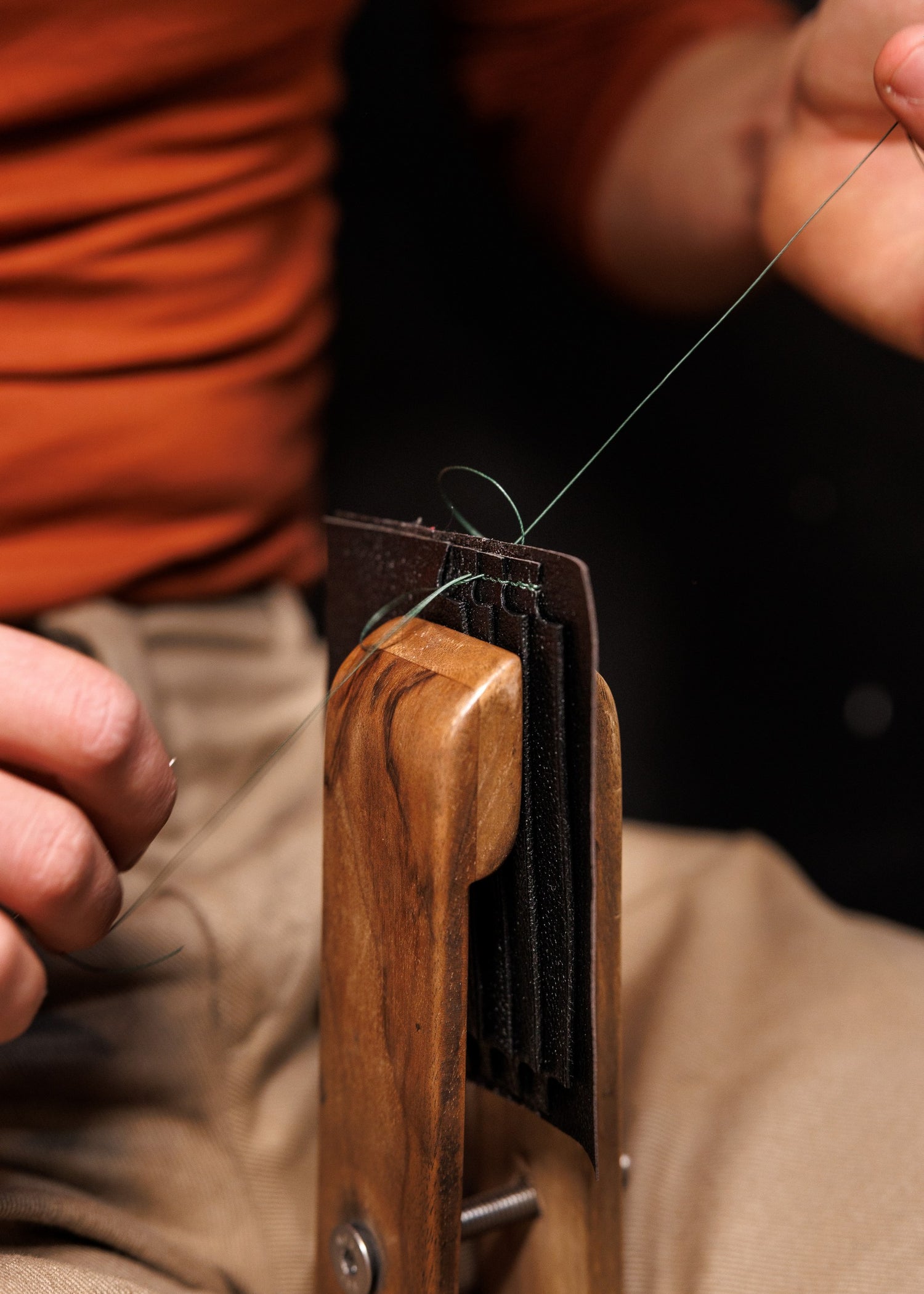 Saddle Stitching, a time-honored technique revered for its strength and elegance, is the hallmark of our craftsmanship. By hand threading two needles through each stitch, we ensure unparalleled durability and aesthetic appeal. This meticulous process not only enhances the longevity of your accessory but also imbues it with a character that machine stitching simply cannot replicate.